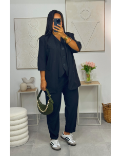 Veste blazer et pantalon avec poches et élastique à la taille