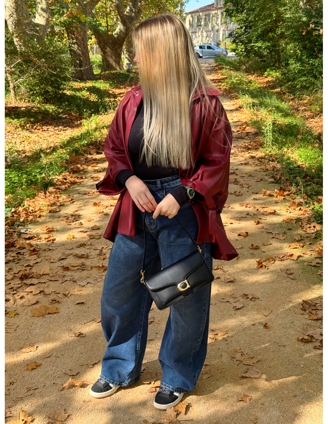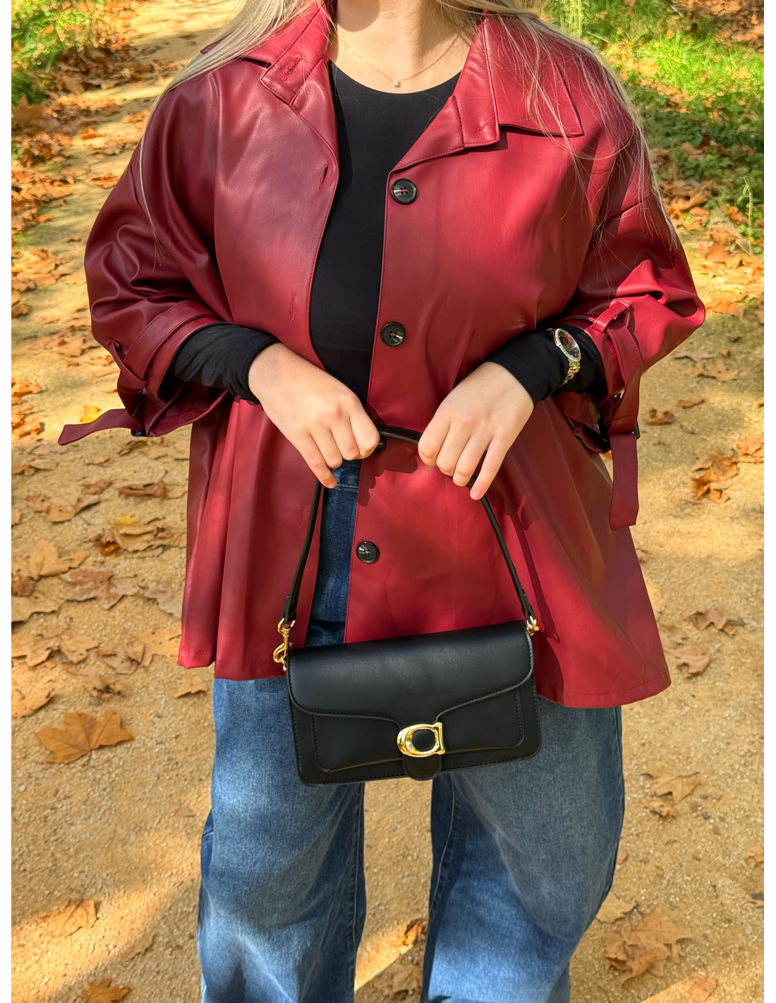 - Veste simili cuir bordeaux